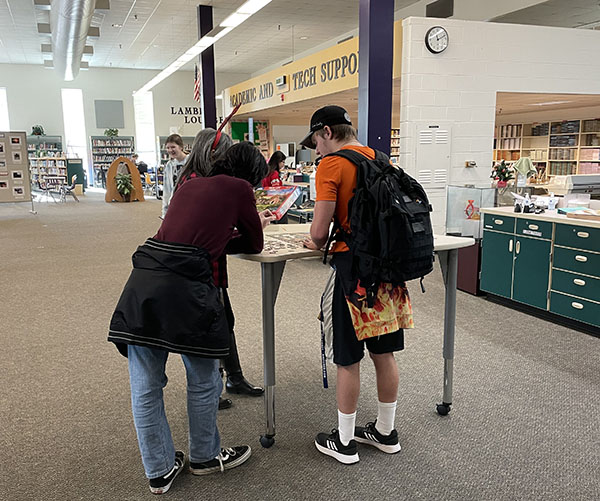 Look at all the activity in the Fort Collins Library and Tech Center! Students and Staff worked on puzzles, games and picked up free books. Our FCHS artists displayed their work for all to enjoy.