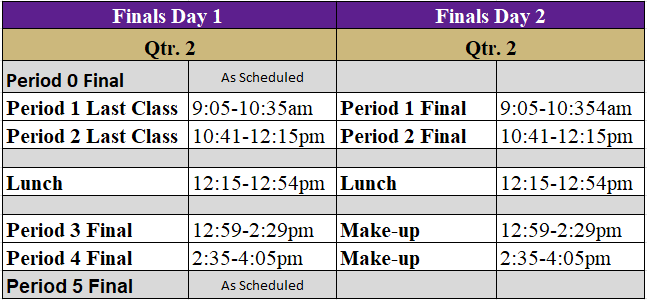 Final Exam Schedule Quarter Two - 12/18 & 12/19